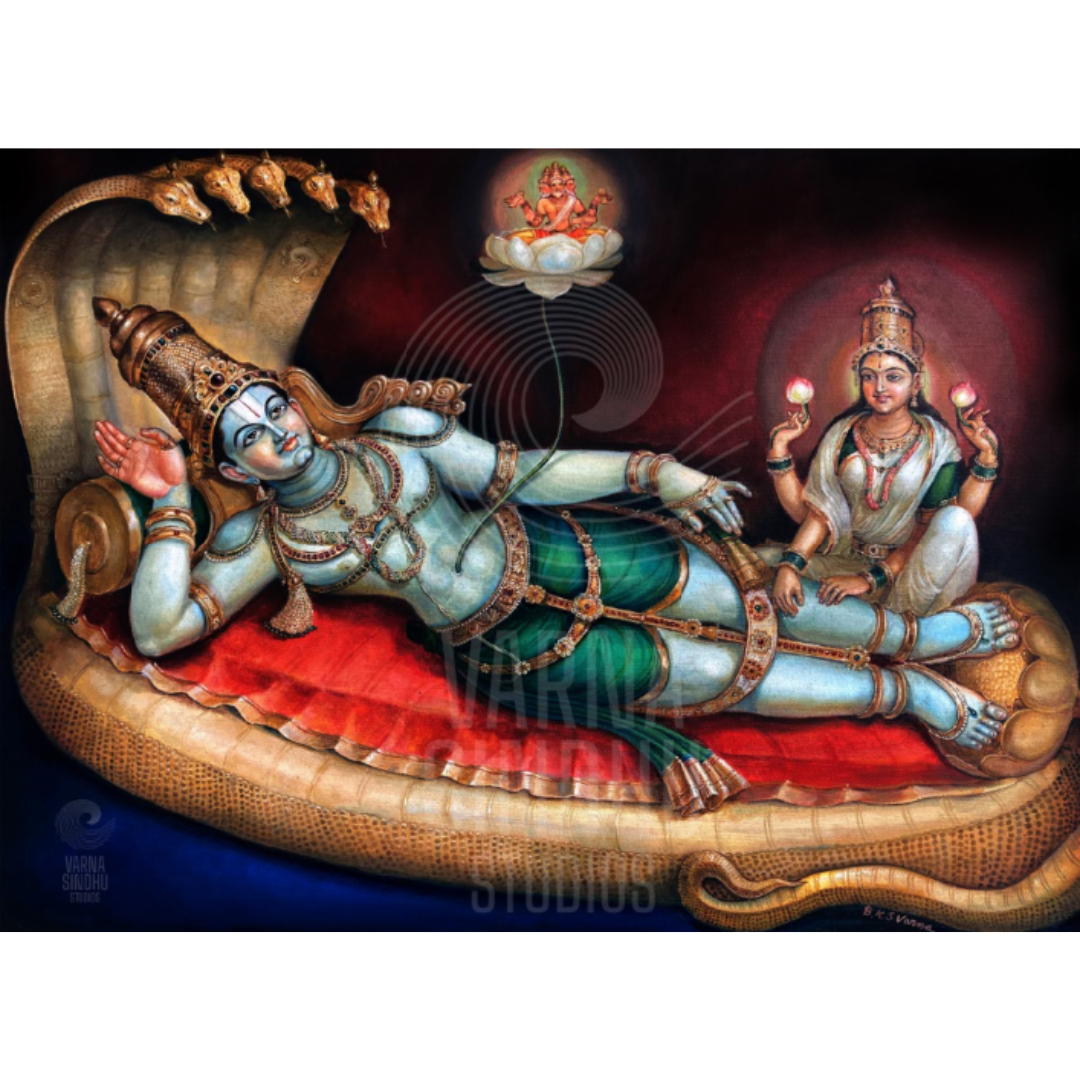 Step into the timeless ocean of cosmic stillness with Anantapadmanabha, a majestic creation.