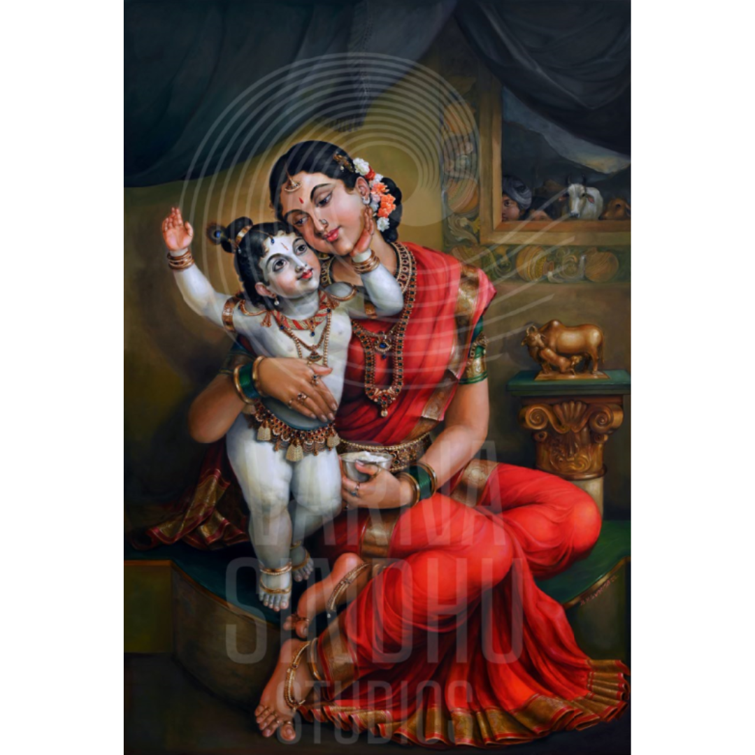 Behold the timeless tenderness of a mother’s love in Yashoda Krishna, an enchanting masterpiece