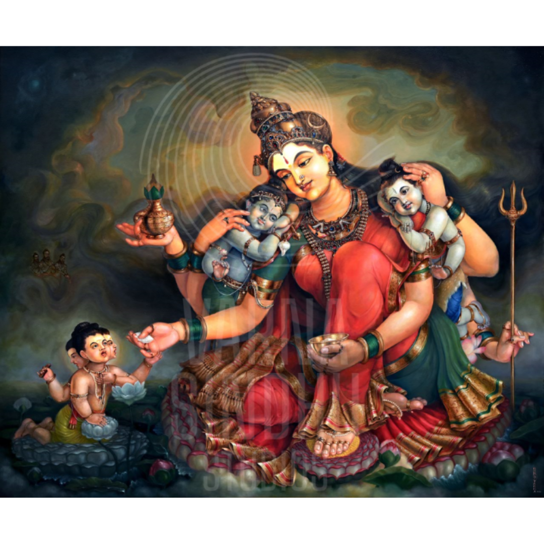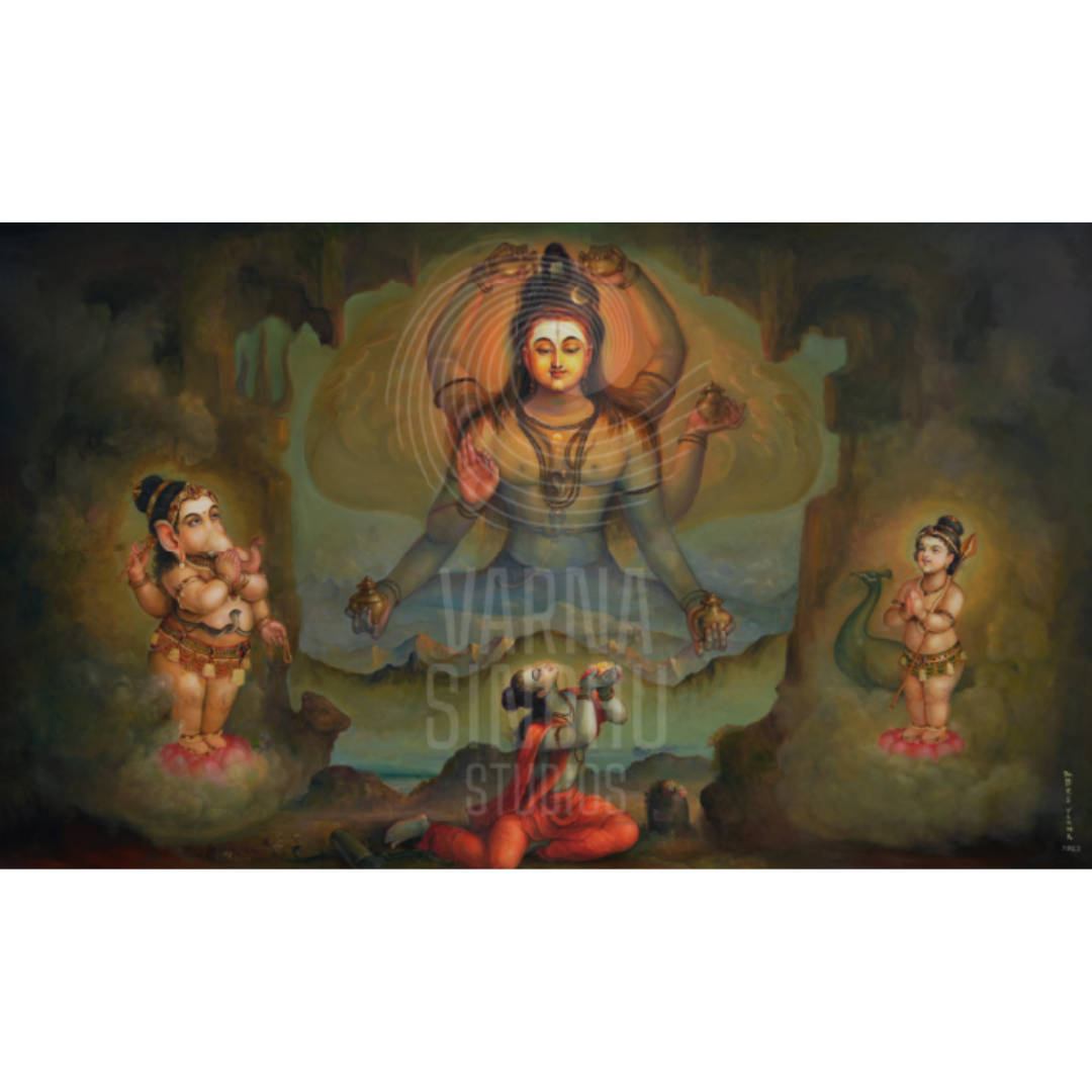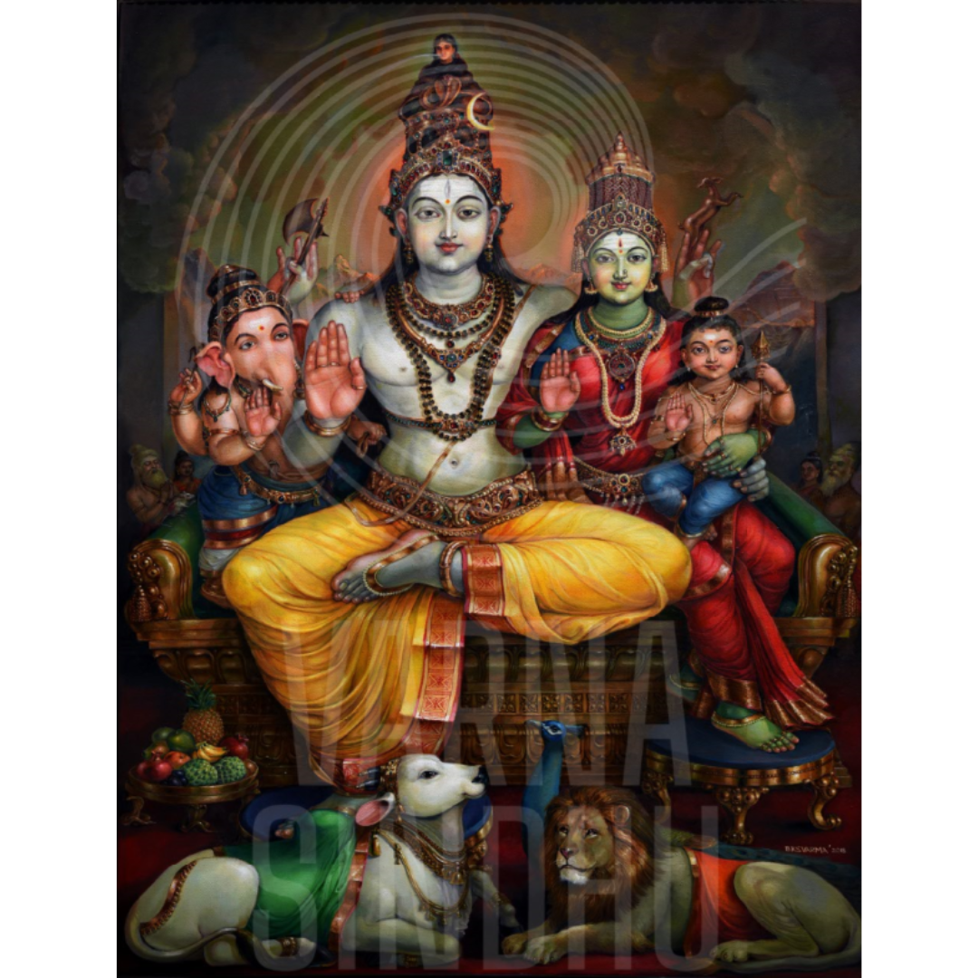 Enter the sacred realm of cosmic harmony through the divine portrayal of Shiva Parivara, a soul-stirring masterpiece.